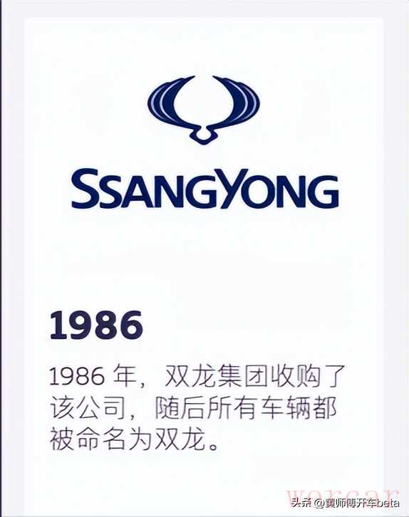 为了防止大家接下来懵逼,我们先简单介绍一下双龙汽车的由来,比较乱,但可以用一句话概括,双龙是一个靠合作获取技术,并经历过多次破产重组的韩国汽车品牌。