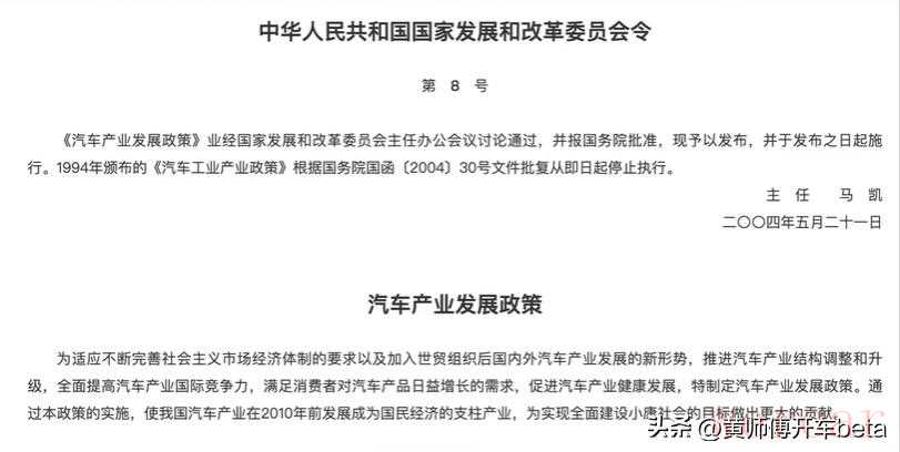 一来,04版汽车产业政策发布,鼓励大型汽车集团做自主品牌,甚至作为考核标准;