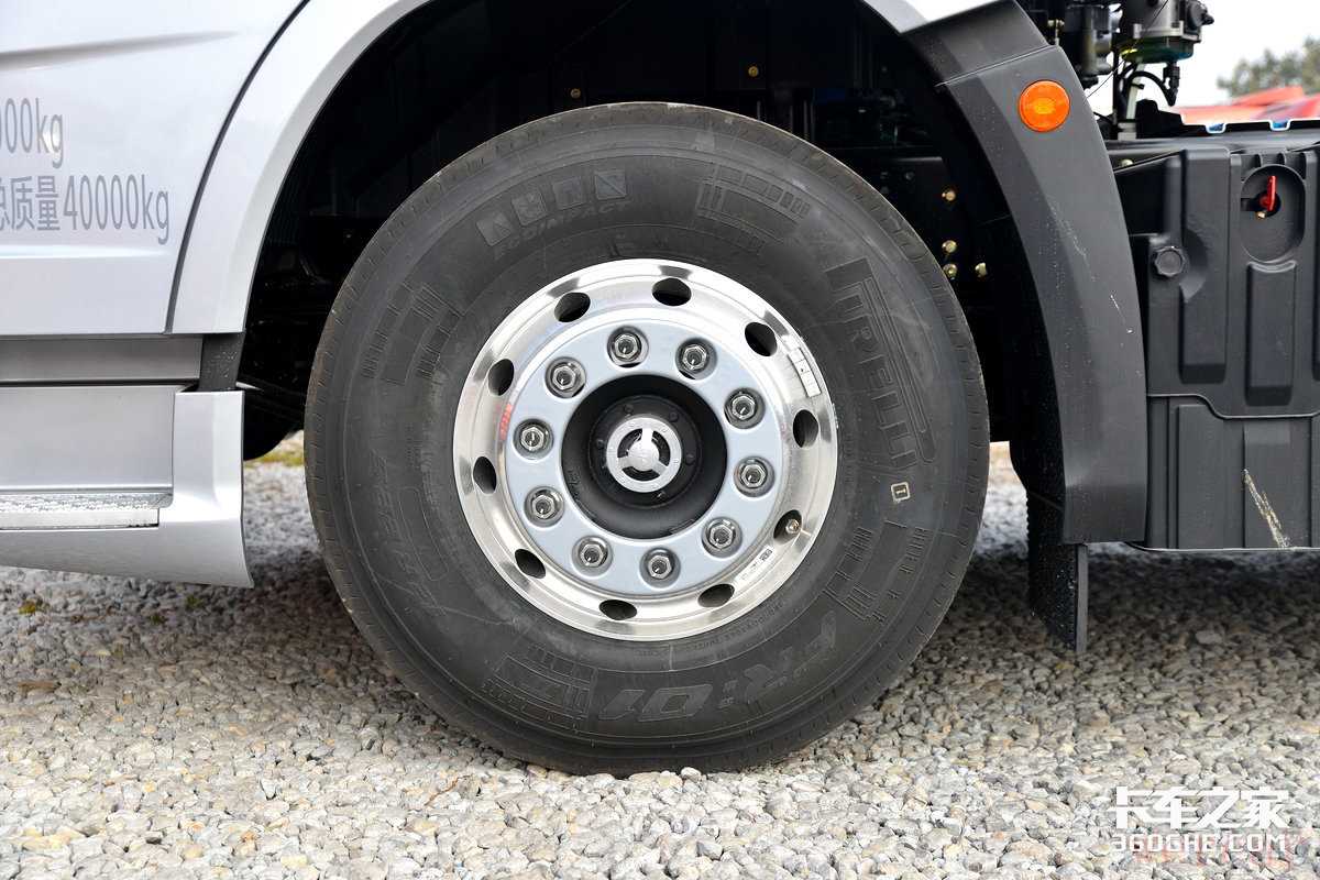 轮胎方面,实拍车型采用了倍耐力FR01公路轮胎,尺寸为12R22.5,除了本身很强大的公路性能外,价格也不菲。同时实拍车型还配备了全车铝合金车轮,不仅强度更大,而且能够有效降低整车重量。解放J7还配备了康迈油润滑轮端,前桥还具备可视窗设计,方便及时观察轮端中的实施情况。