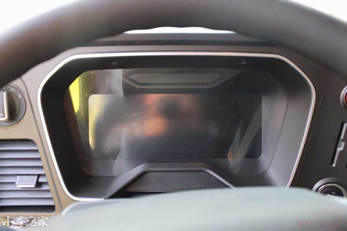 仪表盘区域采用智能化程度非常之高的全液晶仪表,支持三种风格模式的切换,可实时显示车辆的发动机转速、车速、里程、油耗、油量、刹车气压等关键信息和各种警示灯,看起来非常有档次。