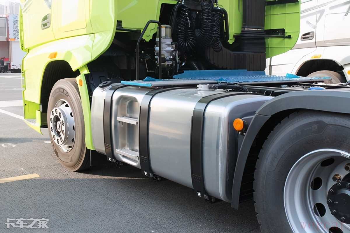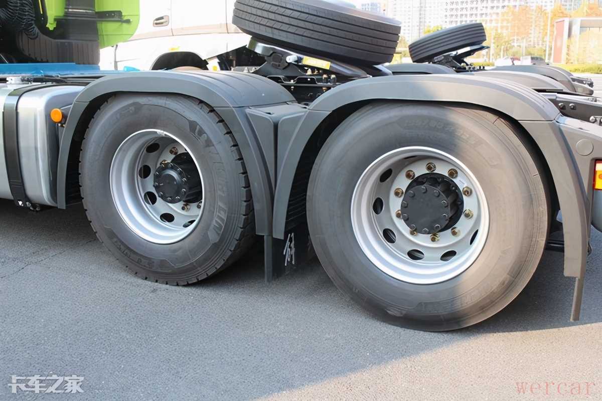 整车匹配规格为295/80R22.5的米其林轮胎,前后轮端均采用康迈的油润滑轮端,保养里程达到50万公里。