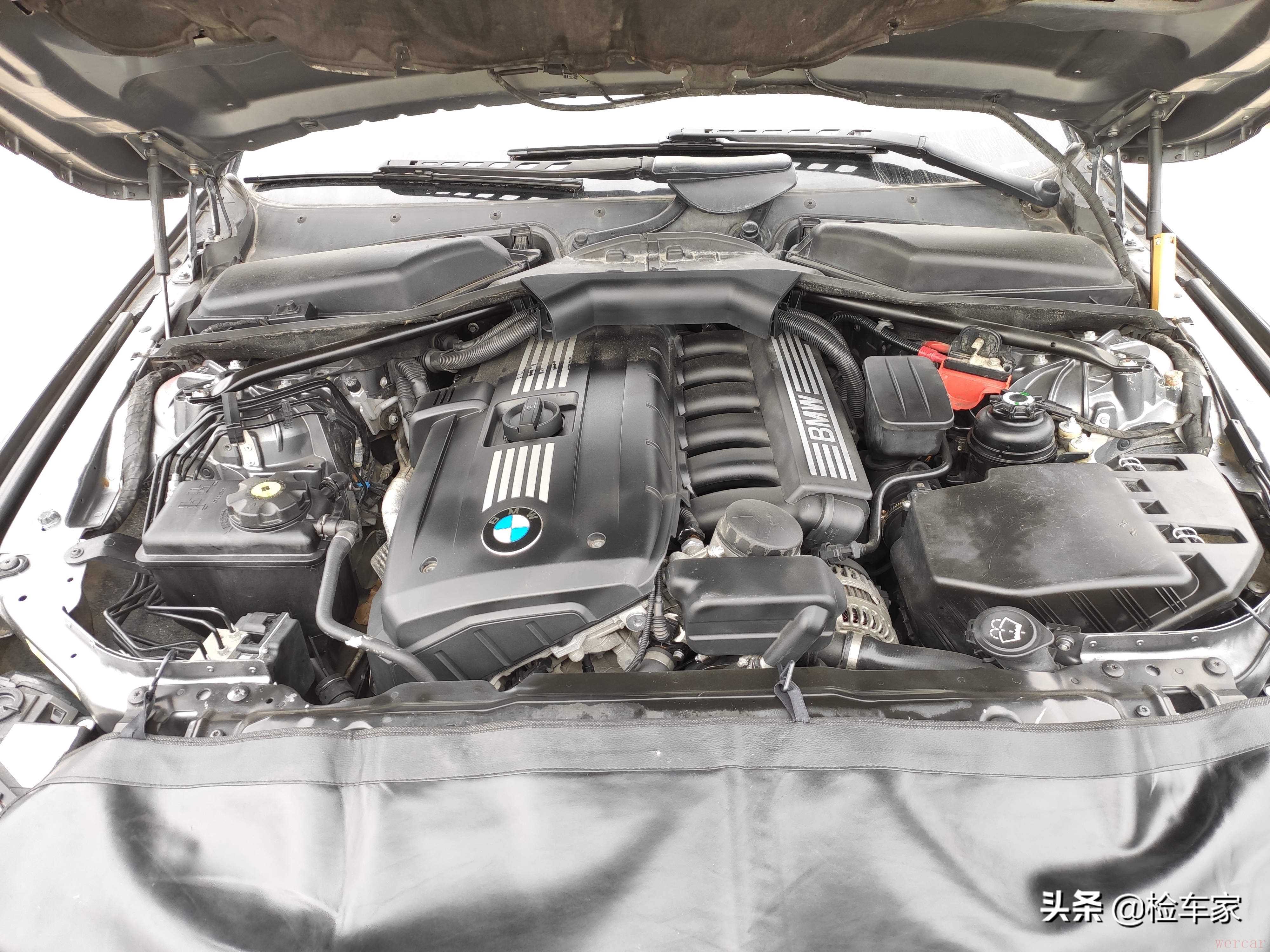 接下来进行发动机舱检测,一看这机舱就很饱满,这机舱应该是被清洗的差不多了,不过也挺好,这样我就不用自己擦灰了。2.5L直列六缸发动机确实有意思,但是实际12-15L的综合油耗,看大家能不能接受,这个是最后一代装备直列六缸2.5L自吸的宝马5系,很多买它都是冲着这个去的。当然10秒破百的加速能力确实有一点点肉,这个大家得自行掂量掂量。