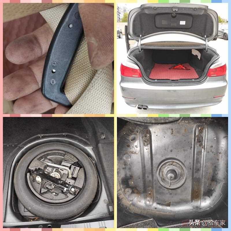 安全带生产日期正常,后部空间还是很大的,初步来看装下我不是问题,工具还是有缺失,但至少常用的还在,紧急情况不至于干着急。后备箱有积水,不用着急,这不是涉水,只是卖家过度清洗,水渍还没干。也可看出备胎坑比较完好。