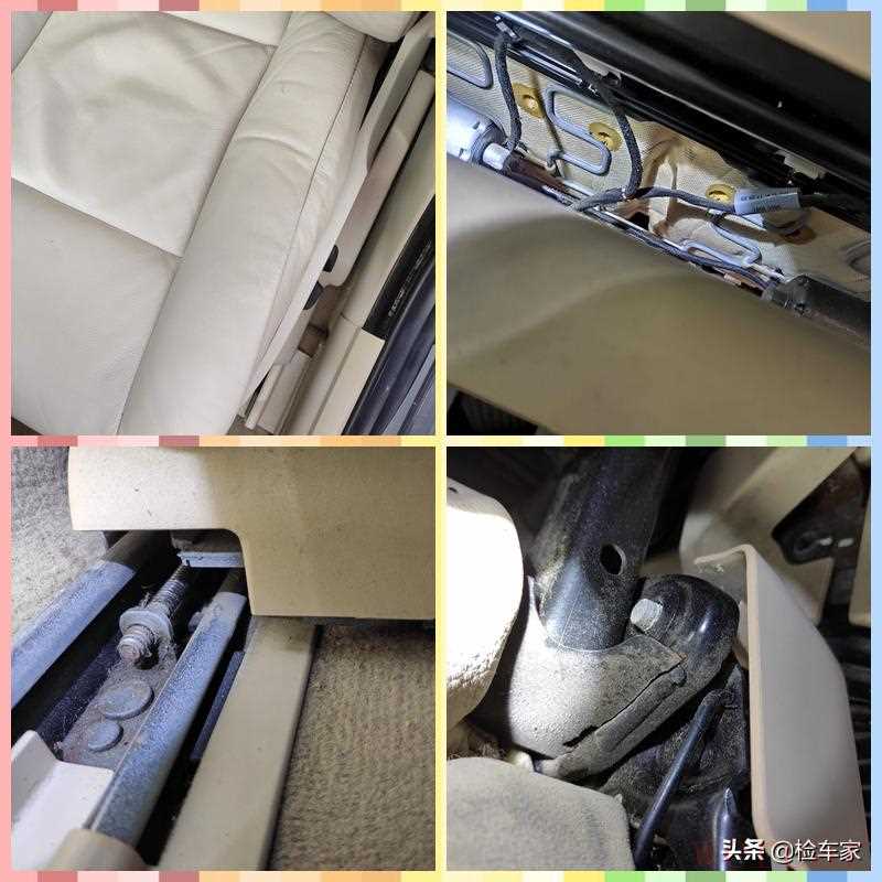左右后部纵梁完好,无变形。把脚垫拿下来,地毯还是暴露了此车原有的情况,地毯脏污。内饰检测完可知无水淹现象,但是此车内饰原本是很脏污的,只不过碰到了一个勤劳爱干净的好车商!