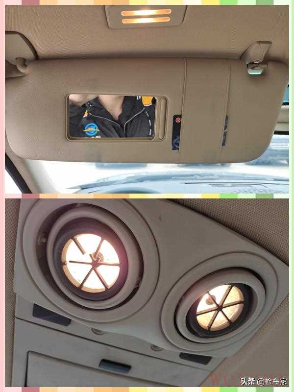 主副驾遮阳板和化妆镜的照明灯完好,车顶照明灯调节损坏,千万不要用手指去触碰,因为一触碰就!得!赔!钱!!!