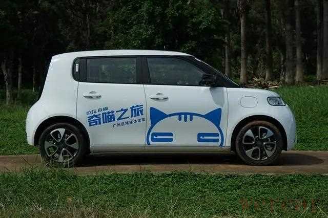 从侧面看,欧拉白猫有点类似日本K-car的造型,AB柱以及C柱上的黑色元素设计,也营造出了悬浮式车顶的设计。如果有同样被白猫萌到的网友,强烈建议将C柱也贴成黑色,绝对别有一番风味。