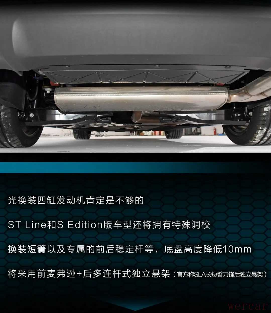对于一台运动家轿来说,ST Line与S Edition车型专属的运动底盘调校或许更加吸引人,定制的弹簧、减振器和稳定杆针对刚性进行了升级。此外,官方称全新的SX半轴外球节,可降低摆动刚度,提升传递效率,降低25%的怠速座椅抖动。