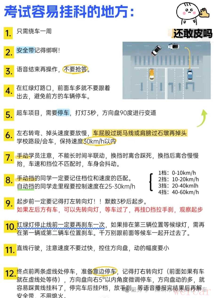 驾考科目三(道路驾驶技能考试)确实有一些细节非常容易让人挂科。这份考前必看清单帮你重点关注这些“雷区”:
