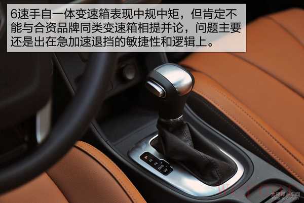 1.5T引擎匹配的是6速手自一体变速箱,这款变速箱的表现中规中矩,按对待家用车惯常的比较温柔的方式来驾驶的话也还是很平顺的,当然受成本和技术所限也不要指望它能跟合资车上同类变速箱那么机灵,这主要体现在急加速时降挡的动作上,敏捷性和逻辑性都还有提升空间。