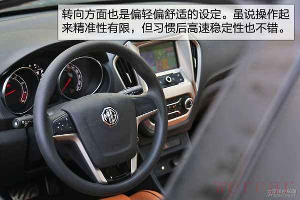 转向方面,也是偏轻偏舒适的设定。虽说操作起来精准性有限,但经过一段时间的适应也还是能保证高速时的稳定性的。但你要问我的话,我还是更喜欢MG3上面那种又紧又韧的手感。