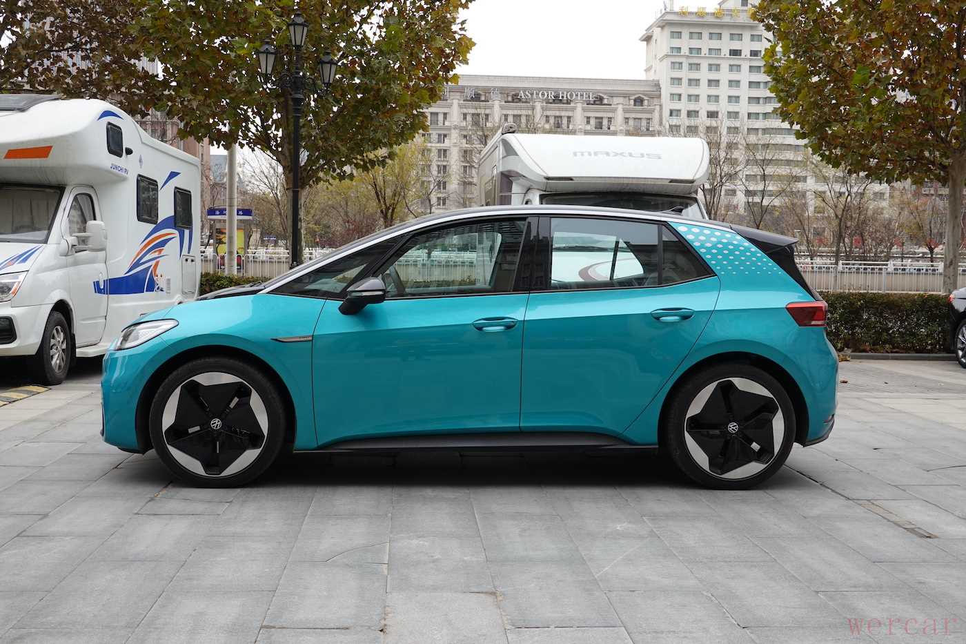 MEB平台架构有个最大的技术优势,车型前轮倾角设计的幅度很大,配合四轮四角布局,产品能得到最优的转弯半径,这会让车型在狭小的道路空间了穿行自如,尤其老小区中的辗转腾挪。