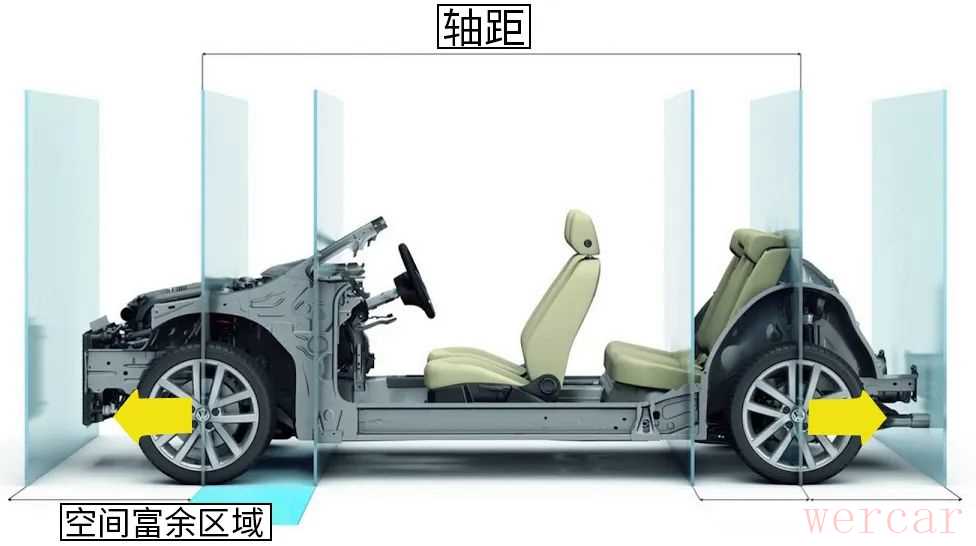 上:高尔夫8 / 下:ID.3如果在燃油车时代,一辆车的轴距长了13厘米,后排空间一定会明显更大。但当你真的坐进ID.3和高尔夫8的后排,又会惊讶的发现,轴距长了129mm的ID.3空间并没有比高尔夫8大。而这样的特点不仅仅是大众一家存在,奔驰、特斯拉、乃至比亚迪都有同样的情况出现。这难免会让不少朋友好奇,为什么现在的电动车轴距很长,空间却不大呢?