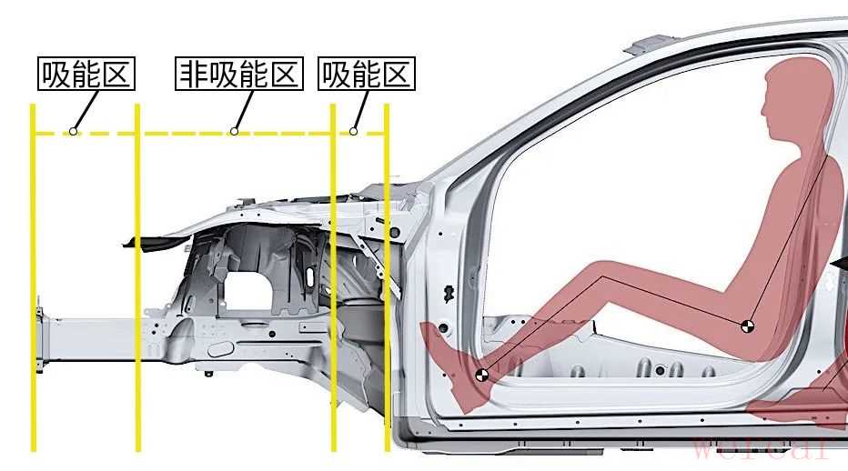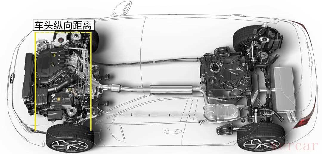 在车头部分,主要是由吸能区+非吸能区两部分构成的。其中,吸能区包括了车辆的防撞梁、加强筋等各种结构件,是车辆被动安全性的关键。由于碰撞测试的存在、以及处于保护乘员的目的,吸能区显然是不能轻易缩水的,所以非吸能区就成为了车头尺寸变化的关键。
