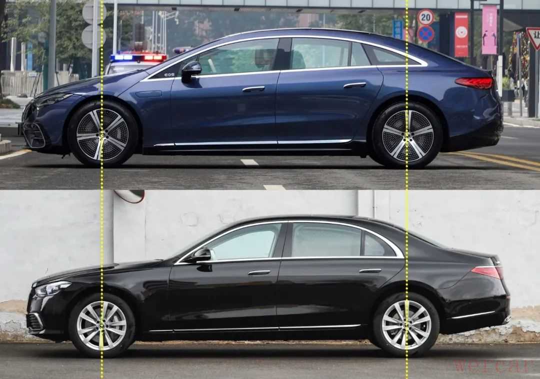 上:EQS / 下:S级这里我们不妨以奔驰S级和EQS作为对比,二者拥有几乎相同的轴距和车长,但车身造型截然不同。其中,EQS的A柱和C柱倾角明显更大,整体呈现出一体式的水滴造型,而S级则更偏向传统三厢轿车,车头、车厢、尾厢之间有着明显的分界。也正是由于车辆造型的差异,EQS的风阻系数只有0.2Cd,是目前风阻系数最低的量产车。而S级的风阻系数则达到了0.25Cd,并不算特别出色。