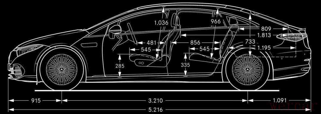 上:S级 / 下:EQS虽然EQS的水滴造型带来了更低的风阻,但对于车内空间的影响也是显而易见的。由于EQS的车顶溜背角度过大,侵占了后排乘客的头部空间,所以EQS必须把后排座椅向前移动,并且将坐垫放得更低,才能保证后排可以正常乘坐。如上图所示,EQS的后排前后纵向距离只有856mm,而S级则达到了894mm,腿部空间明显是S级更大。另外,溜背式的车顶对于后排垂直高度也有明显影响,比如EQS的后排坐垫到车顶的垂直距离只有966mm,而S级则达到了1003mm,别小看这37mm,转换到实际乘坐中,可就是顶头跟不顶头的区别了。