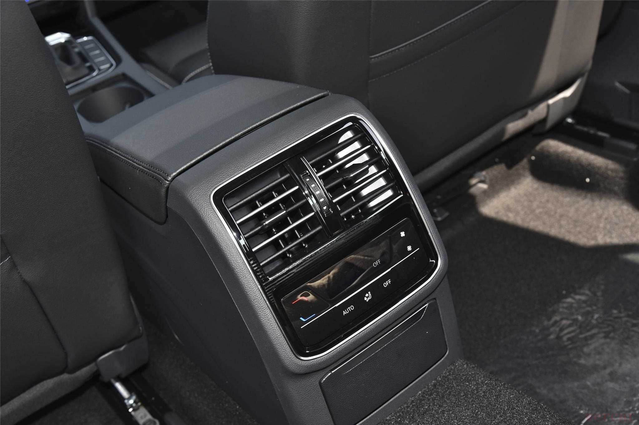 后排空间富裕舒适,大沙发座椅配备了3个头枕,多功能中央扶手,以及老板键,可以40:60折叠放倒。中间带液晶触控调节的后排空调出风口,以及下方隐藏式电源接口,提升乘坐舒适度。