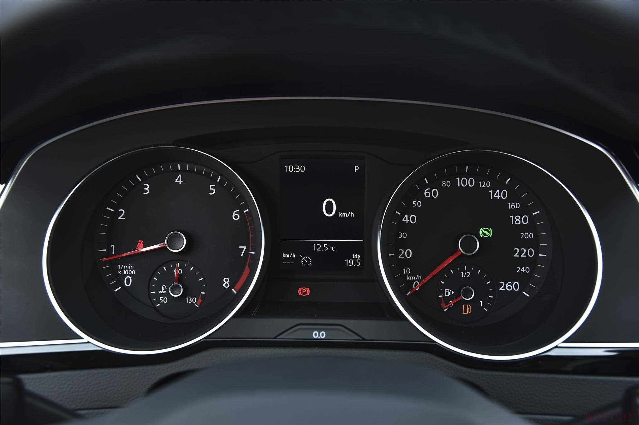 真皮平底多功能控制方向盘,支持上下前后调节。双圆环指针仪表盘,加上单色小显示屏,信息直观大气。