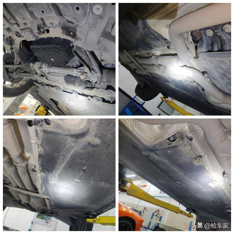 把车子整个举起来之后,可以看到底盘还是比较规整的,没有明显的剐蹭、托底、漏油痕迹。