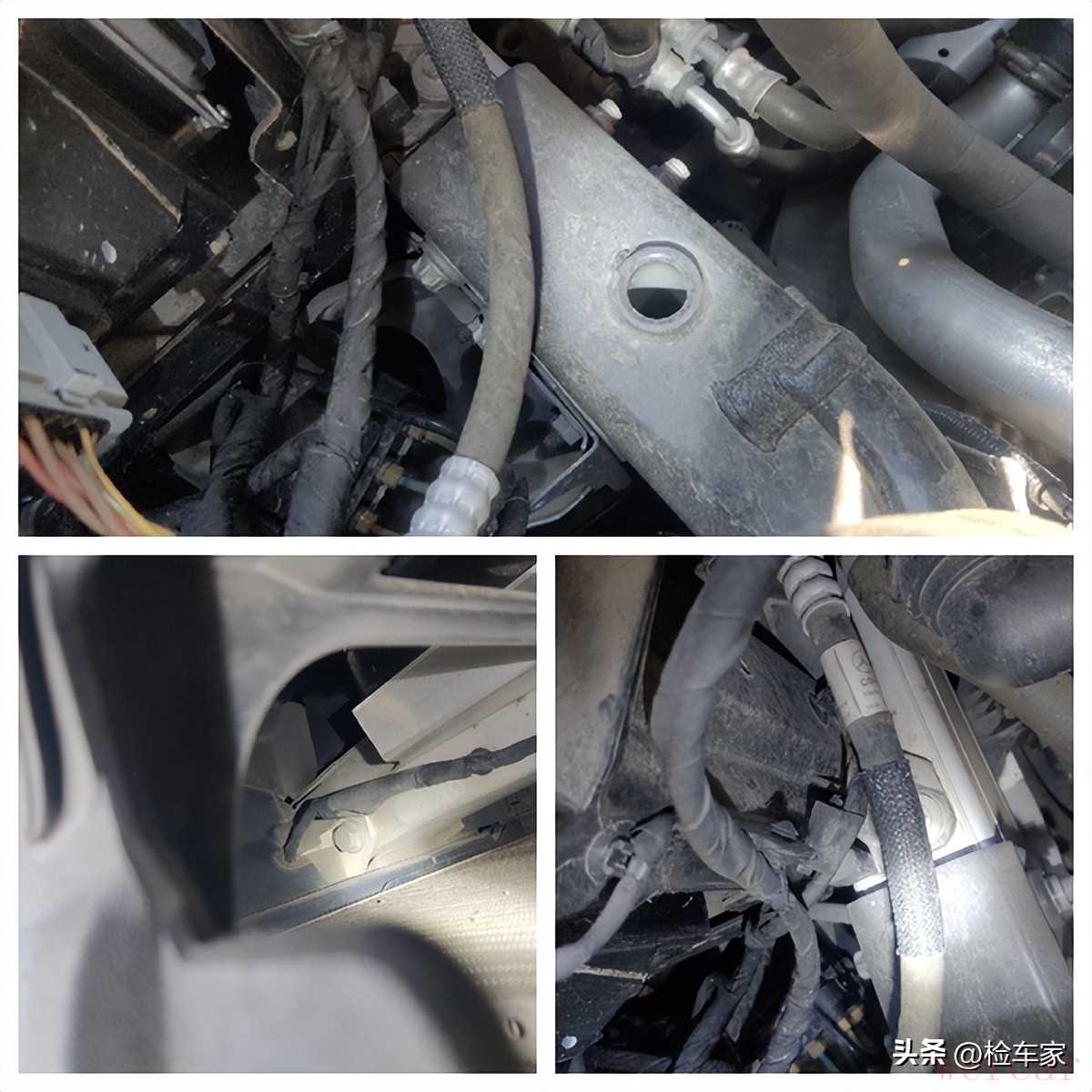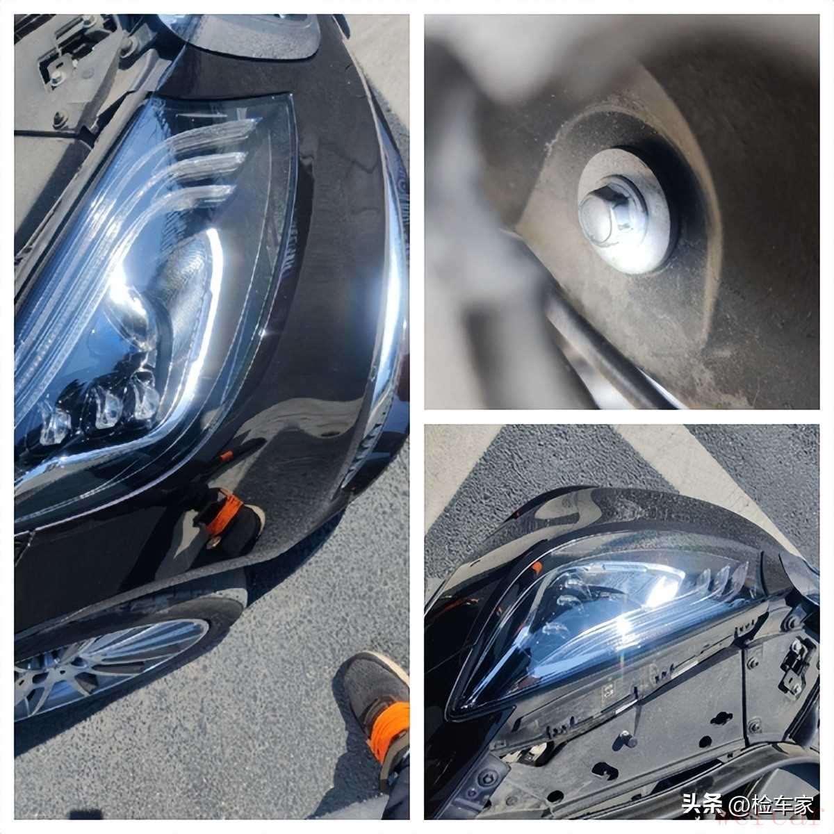 老规矩还是从车头开始看起,可以看到前杠有拆装修复,两个大灯都有拆卸,右前大灯更换。