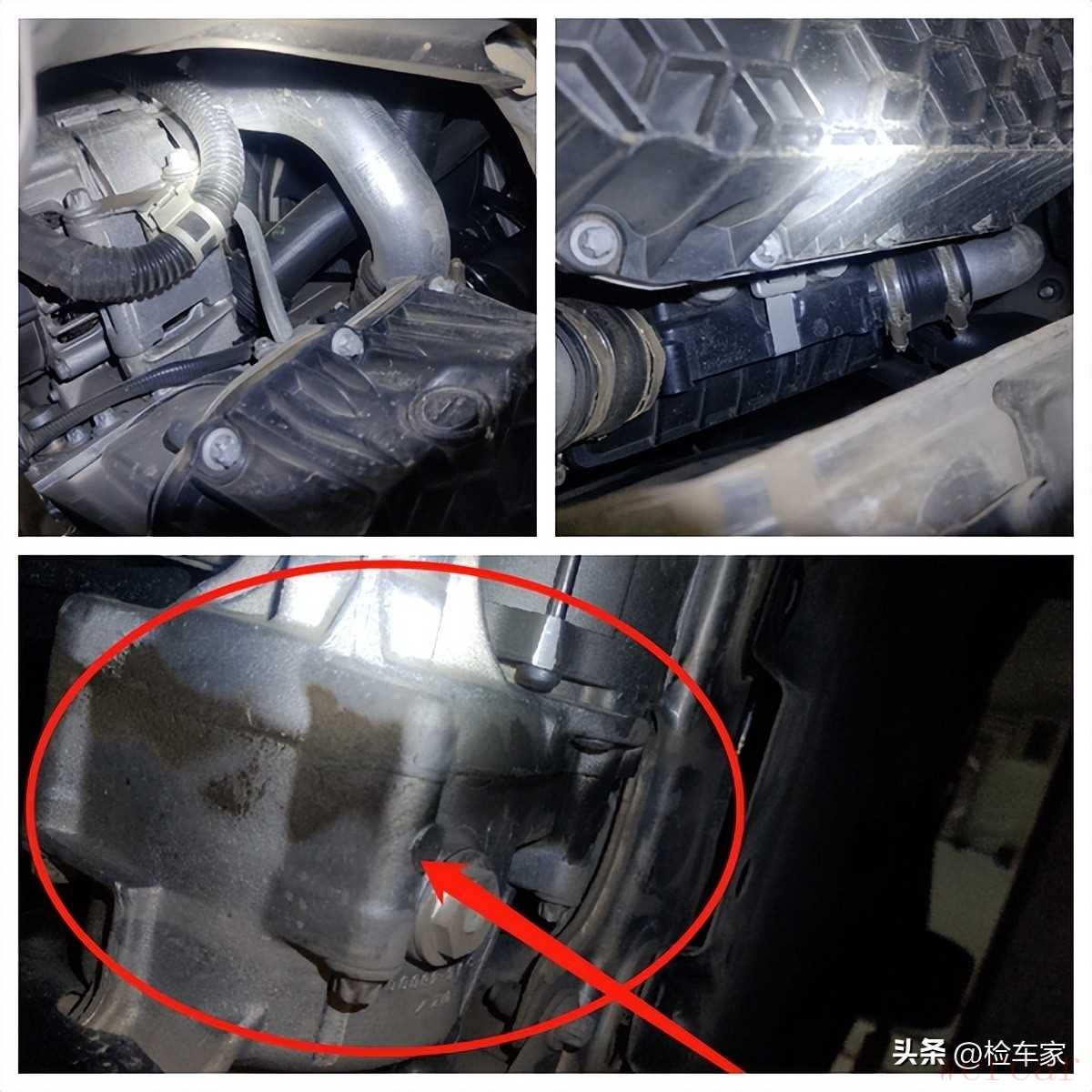 经过检查,可以看到发动机、变速箱没有拆卸维修的痕迹,也没有大面积的渗漏,只有发动机气门室盖以及前端盖有点轻微的渗油,毕竟是奔驰车嘛,跑了6万公里,有点轻微的渗油也能接受。