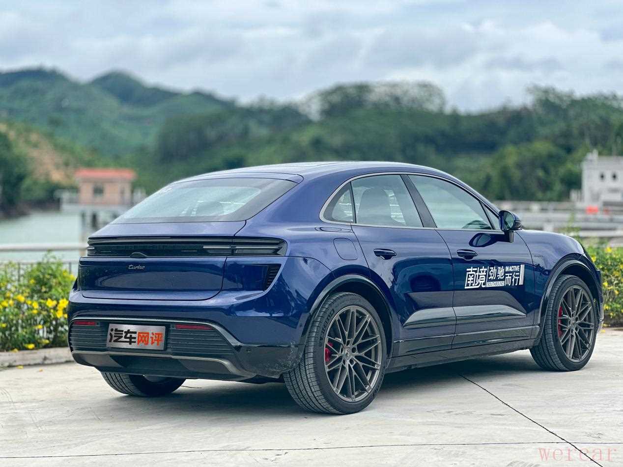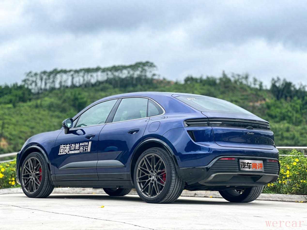 斯图加特的盾徽之下,Porsche这个名字,承载着超过七十载对驾驶纯粹性的执着追求。从风冷时代的灵魂轰鸣到勒芒赛场的巅峰荣耀,保时捷的传奇,从来不是对过去的简单复制,而是在每一次技术变革的十字路口,不断地重新定义驾驶的真谛。尤其是经过这次试驾纯电动版Macan之后,这种感触更为深刻,也恰好借此机会和大家聊聊保时捷对电车的理解。 小编此次试驾的是Macan的Turbo版,从造型来看第一眼就能认出这是一台Macan,保时捷标志性的飞线设计、流畅的车顶线条和宽厚的车肩,勾勒出熟悉的运动型SUV轮廓。但走近细看,电动时代的笔触清晰可见,比如更简洁有力的封闭式前脸设计,搭配四点式LED日间行车灯和可选装的矩阵式LED大灯,科技感十足又不失品牌辨识度。侧面,经典的低重心设计,结合流畅的溜背线条,运动姿态甚至比燃油版更显矫健。Turbo版本独有的更激进的前后包围、大尺寸轮毂和醒目的刹车卡钳,无声地宣示着它的性能身份。整体而言,它成功地在延续Macan家族经典设计语言的基础上,通过更干净利落的型面、更注重空气动力学的细节,传递出一种面向未来的动感与精炼。这设计,既是对传统的致敬,也是电动性能的自信表达。
