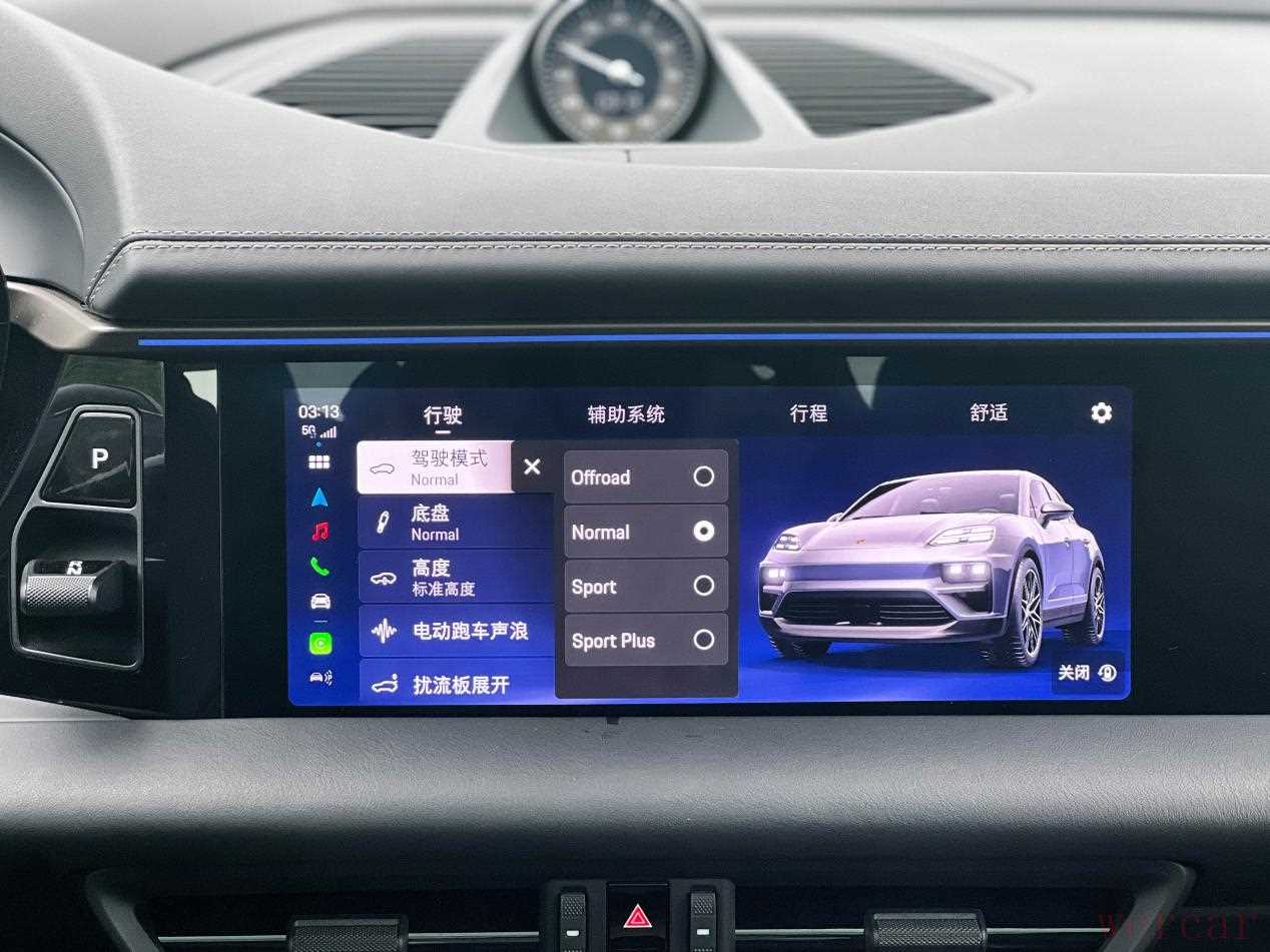 小编此次试驾的是Macan的Turbo版,从造型来看第一眼就能认出这是一台Macan,保时捷标志性的飞线设计、流畅的车顶线条和宽厚的车肩,勾勒出熟悉的运动型SUV轮廓。但走近细看,电动时代的笔触清晰可见,比如更简洁有力的封闭式前脸设计,搭配四点式LED日间行车灯和可选装的矩阵式LED大灯,科技感十足又不失品牌辨识度。侧面,经典的低重心设计,结合流畅的溜背线条,运动姿态甚至比燃油版更显矫健。Turbo版本独有的更激进的前后包围、大尺寸轮毂和醒目的刹车卡钳,无声地宣示着它的性能身份。整体而言,它成功地在延续Macan家族经典设计语言的基础上,通过更干净利落的型面、更注重空气动力学的细节,传递出一种面向未来的动感与精炼。这设计,既是对传统的致敬,也是电动性能的自信表达。 拉开车门,低矮的重心设计立刻将你拉入熟悉的保时捷语境。坐进驾驶席,身体瞬间被包裹进支撑性绝佳的舒适型运动座椅中,而且这车还带加热通风功能,是长途的福音。相比上代燃油版,驾驶位坐姿显著降低了28mm,跑车般的贴地感扑面而来,但视野并未牺牲,反而更显通透开阔。指尖搭上方向盘,那经典的、带着点韧劲的紧致感立刻建立连接,这熟悉的手感,是保时捷与驾驶者无声对话的起点。按下启动键,没有引擎的轰鸣预热,只有仪表盘安静地点亮。然后这车开起来的感觉也十分地道,虽然没有涡轮迟滞,也没有转速爬升,一股庞大、直接、近乎蛮横的力量,瞬间从后背袭来,把我稳稳按在椅背上。这感觉,不同于燃油Turbo那种需要等待的爆发,更像是被一股持续的、线性的巨力直接从静止“推”了出去。