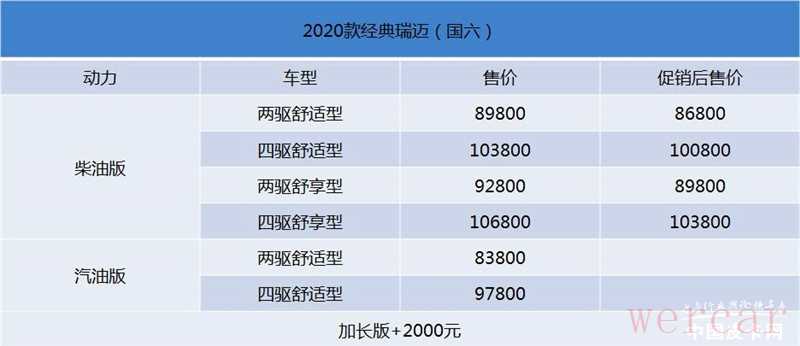 9月9日,江西五十铃2020款国六经典瑞迈上市,柴油版车型起售价为8.98万元,汽油版车型起售价为8.38万元。国六经典瑞迈柴油车型将送出价值超过6000元的新车福利,购车即享3000抵6000元现金优惠,再享2年免息金融礼,皮卡用户还可享受增/换购补贴3000元。