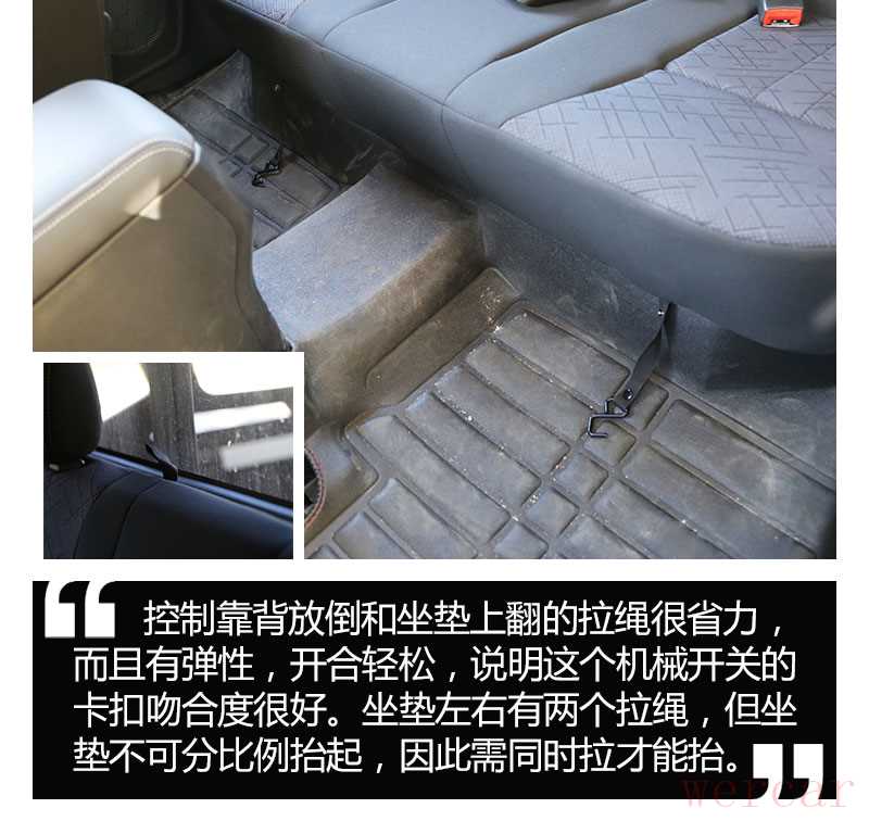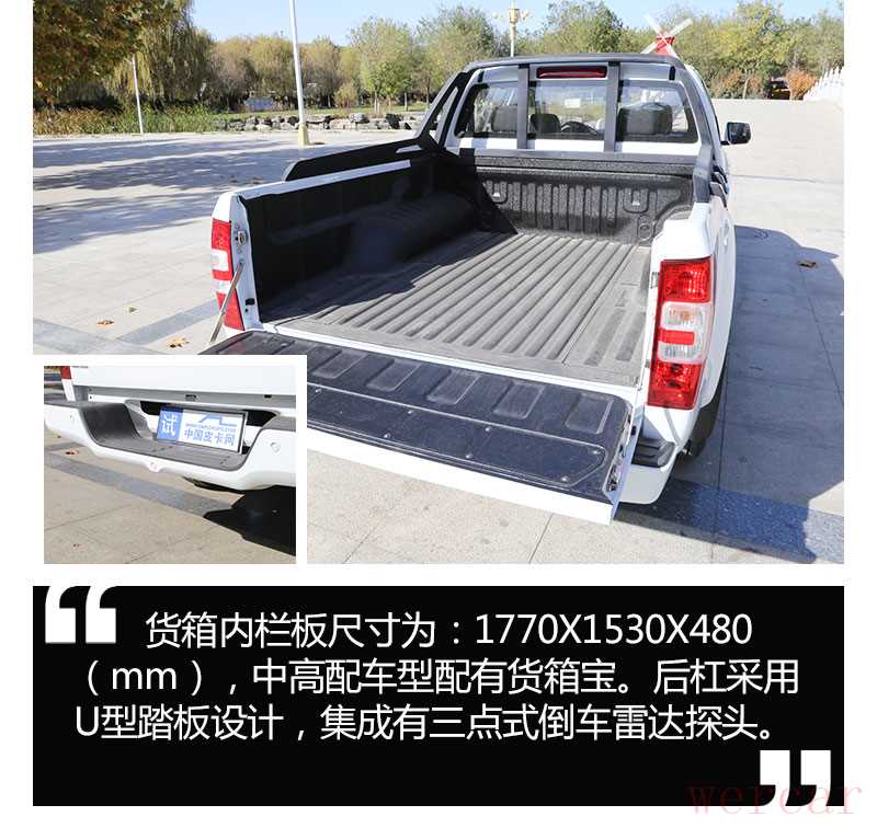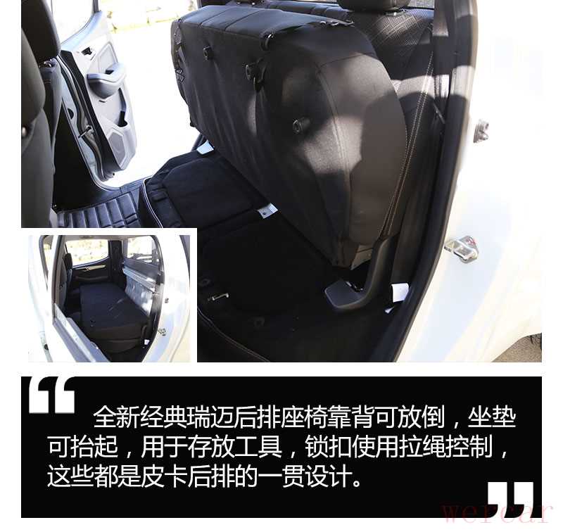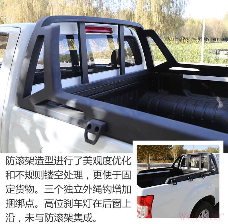 "实用的功能配置":如后排座椅放倒、货箱扩展、丰富的储物空间等,方便装载和作业。