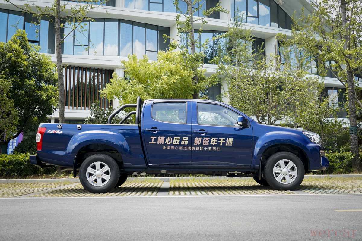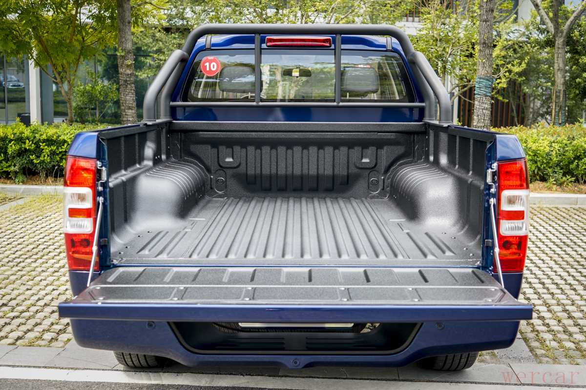 该车的车身侧面和尾部并没有什么变化,造型属于简单耐看类型,并且采用了16寸铝合金轮圈,制动系统依然是前盘后鼓的结构,配备的是机械式手刹。这台车提供了标轴和长轴版本的车型,长/宽/高为5330(标轴)/5615(长轴)×1860×1785毫米,此外长轴版还提供了平底货箱,车身高度为1850毫米。在货箱尺寸方面,长/宽/高分别为1480(标轴)/1770(长轴)×1530×480毫米。其中,长轴版本的1.77米纯平底耐磨胶涂层的长货箱,装载能力比普通货箱提升了近20%,且货箱防滚架内部拥有耐磨胶涂层。