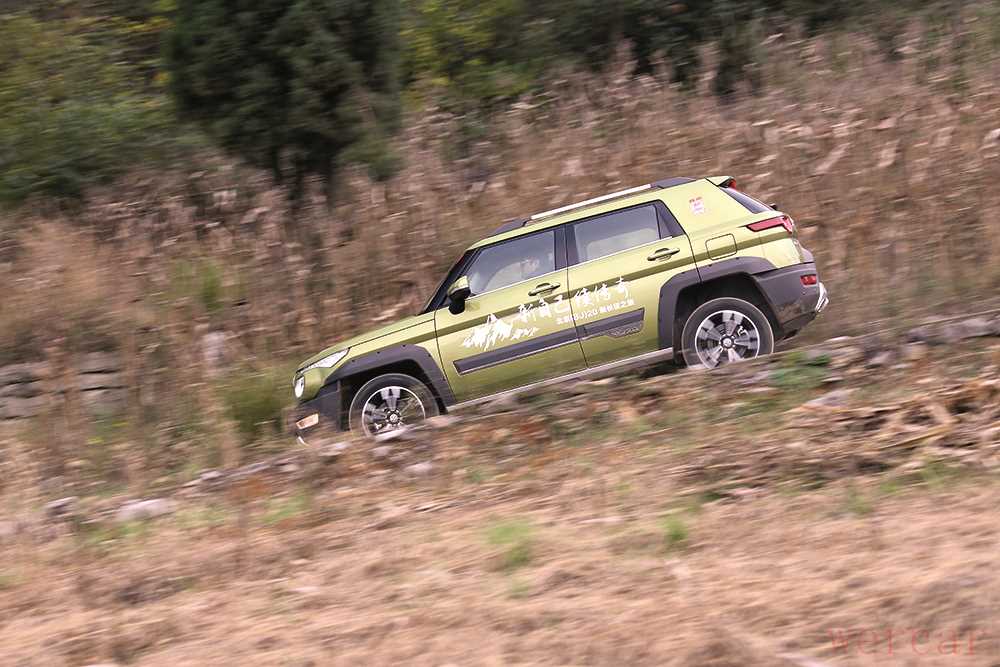 虽说BJ20只是一款城市SUV,也只提供了前驱版本,但它不是个软蛋。这一点在我被大师忽悠误上了一个坡度很大、宽度奇窄的碎石坡时感受到了。随着油门踏板的一点点深踩,原本不小心停在乱石坡上的BJ20缓缓起步,轮胎没有打滑痕迹,稳稳地爬上去了。说实话,我原本并没抱希望,CVT+1.5T的两驱车,并不是干这种活儿用的。