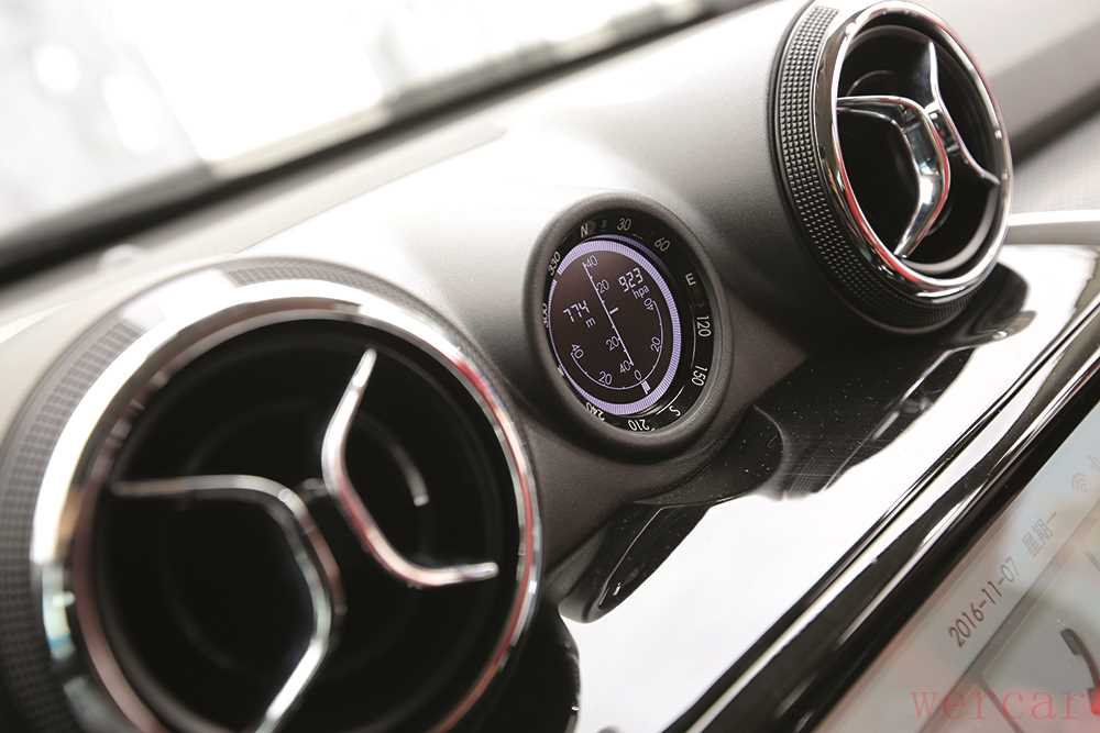 “北”字型空调出风口,很有特色。中间的海拔表功能丰富、极具特色