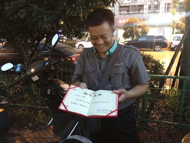 2015年,周卫华毅然辞职回到长沙,在火车站附近一家饿了么站点,做起了外卖小哥。“工作很简单,就是骑个电动车串家走户,很多年轻人都不愿意干。”周伟华干劲十足,不到一年就晋升为站点“送单王”,月收入最高时有1.2万元。
