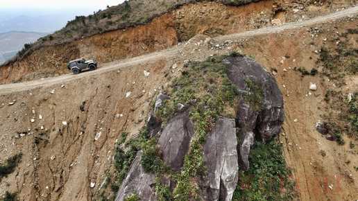 这张可以看出上路的险峻,临崖路段,而且没有路基,随时可能塌下去,危险性比较高。