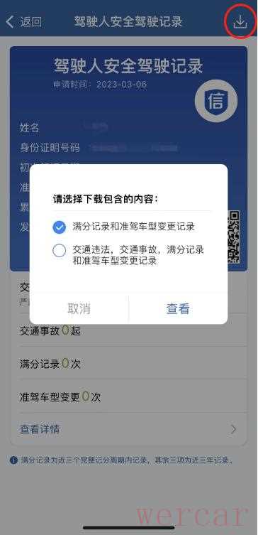 六是如需保存该证明,可点击右上角的下载图标,勾选需要下载的内容范围,即可将该记录下载至手机或打印为纸质版备存。