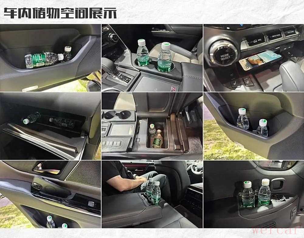 储物空间方面雷克萨斯LX700h OVERTRAIL领境版只能说中规中矩,门板不算大,但杯架数量也够用,手机也有地方可以放。但后备厢就比较惨了,因为强行塞入了三排座椅,所以这台车的后备厢几乎是没有的。又因为有了电池的存在,即便是把第三排座椅翻折之后也会形成一个很高的平台。厂家的解决方案倒也简单粗暴,直接用一块可翻折的板把它给垫平整了。