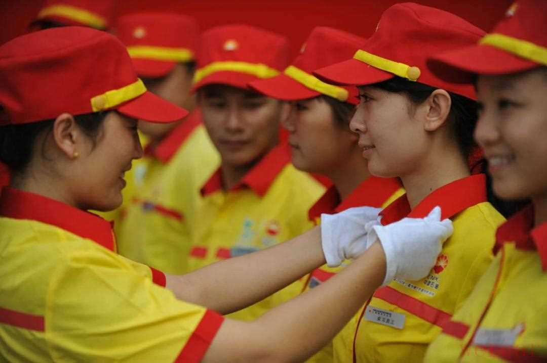 中国石油的加油站员工统一着防静电工装,加油员身穿黄色上衣,深蓝色裤子,头戴红色帽子。站长稍有不同,着浅蓝色上衣,其余与加油员一致。