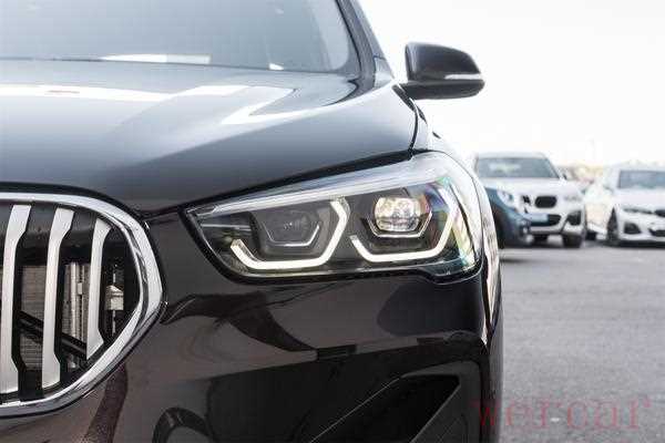 实测车辆为20Li时尚型,也就是最低配宝马X1,其外观与顶配车型并无太大区别。前脸依旧由家族标志性的双肾式进气格栅和天使眼大灯组成,除去勺状的LED日间行车灯外,全系标配LED自动大灯。