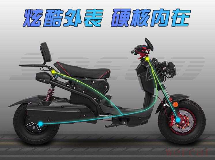 虽然这款车的造型没有第一款那么“另类”,但它具有宽大锋利的前脸,配置悬浮的显示屏,配置靓色或深色的配色,让车辆具有一定高颜值,同样具有“炫酷感”,而车辆的整车长度为1850MM,虽然小于第一款车,但它的鞍座长度为650MM,是比第一款还要长,两人乘坐更舒适,而该车采用优质钢材车架,坚固稳定,可以承重400斤。