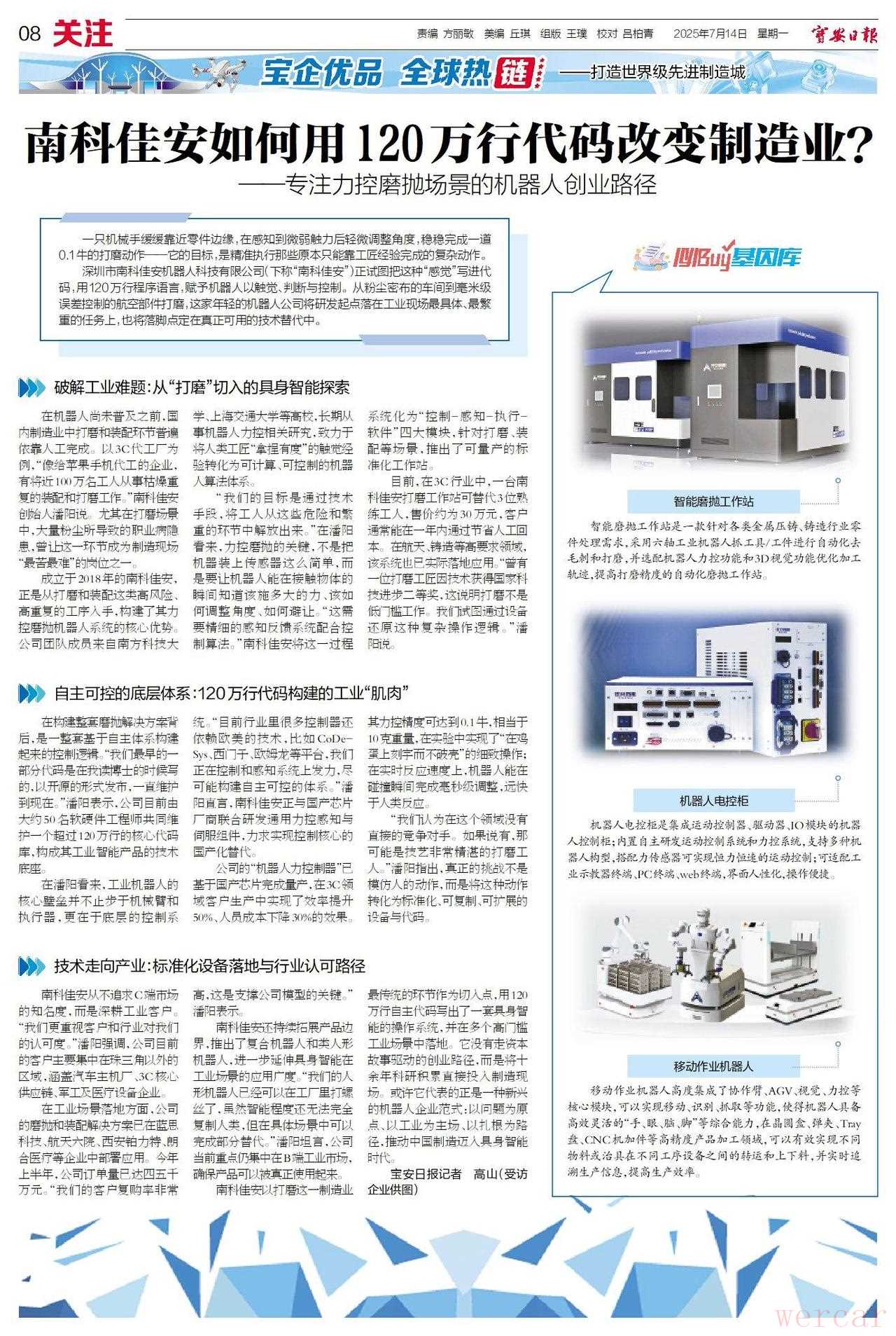 深圳市南科佳安机器人科技有限公司(下称“南科佳安”)正试图把这种“感觉”写进代码,用120万行程序语言,赋予机器人以触觉、判断与控制。从粉尘密布的车间到毫米级误差控制的航空部件打磨,这家年轻的机器人公司将研发起点落在工业现场最具体、最繁重的任务上,也将落脚点定在真正可用的技术替代中。