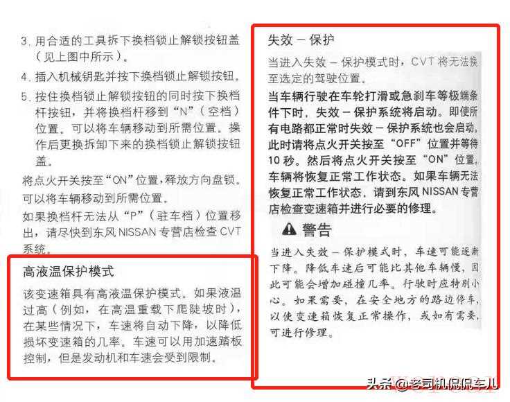 日产的CVT变速箱,存在的问题非常明显,实际上可以说这款CVT变速箱非常娇贵,首先是变速箱冷保护问题,在北方的冬天,很多日产车主都会遇到冷启动之后踩油门变速箱不升挡(模拟挡位),时速保持在20km/h以下,无论怎么踩油门都不行,要启动几分钟之后才恢复正常。