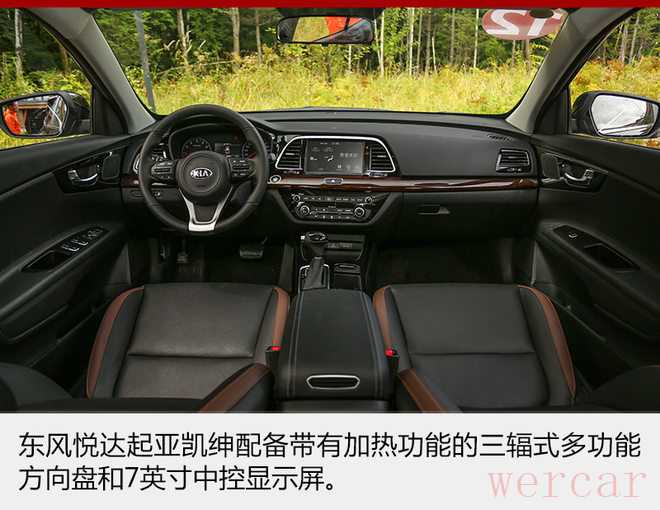 内饰方面,东风悦达起亚凯绅采用内部开放式水平布局,内饰以黑色为主,加入棕色点缀。新车配备三辐式多功能方向盘,方向盘带有加热功能;驾驶席座椅可进行12向调节,并且带有记忆、通风、加热等功能;中控显示屏为7英寸,配备UVO车载智能信息系统,支持安卓手机和苹果手机连接。
