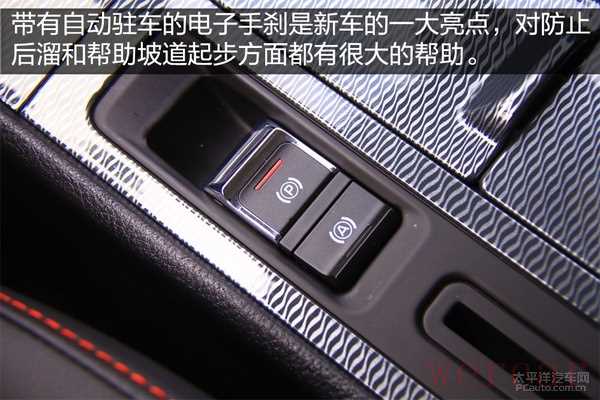 看到这个手刹绝对让人眼前一亮,而且还带自动驻车,想想再也不用担心坡起熄火溜坡了别提多高兴了,但是事实告诉我们理想是美好的现实是骨感的,实际使用中这个自动驻车略显呆滞反应有些慢,新手更是需要一定时间的上手,开上一会儿就开始怀念机械手刹了。