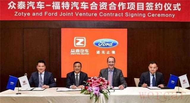 2017年8月,众泰汽车与福特汽车签署谅解备忘录,将各持总股本的50%,共同建立中外合资自主品牌纯电动乘用车生产企业。随后,双方将合资公司中文名称暂定为"众泰福特汽车有限公司"(以下简称"众泰福特")。2017年12月,福特汽车与众泰汽车举行合资公司工厂项目投资签约仪式,双方将合作开发年产10万辆系列经济型纯电动乘用车型。