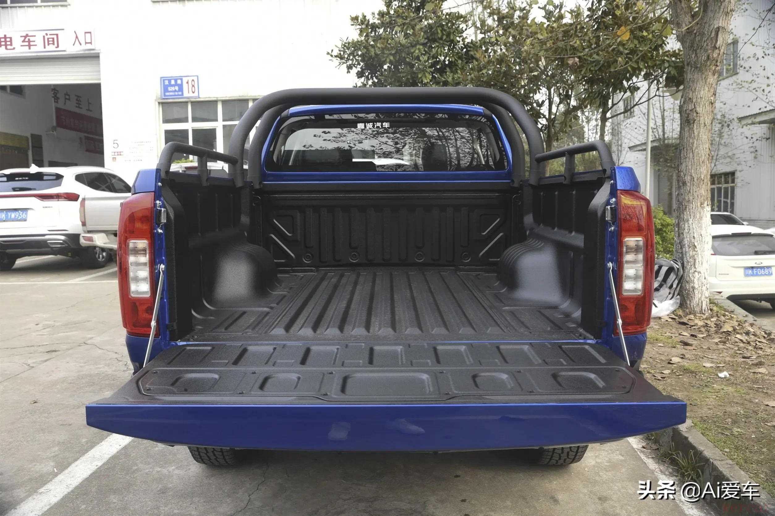 货箱长宽高为1760x1520x540,内部做了防滑的处理,尾门是倒开的,上方还货架,可以用于捆绑绳索,载物能力没得说。