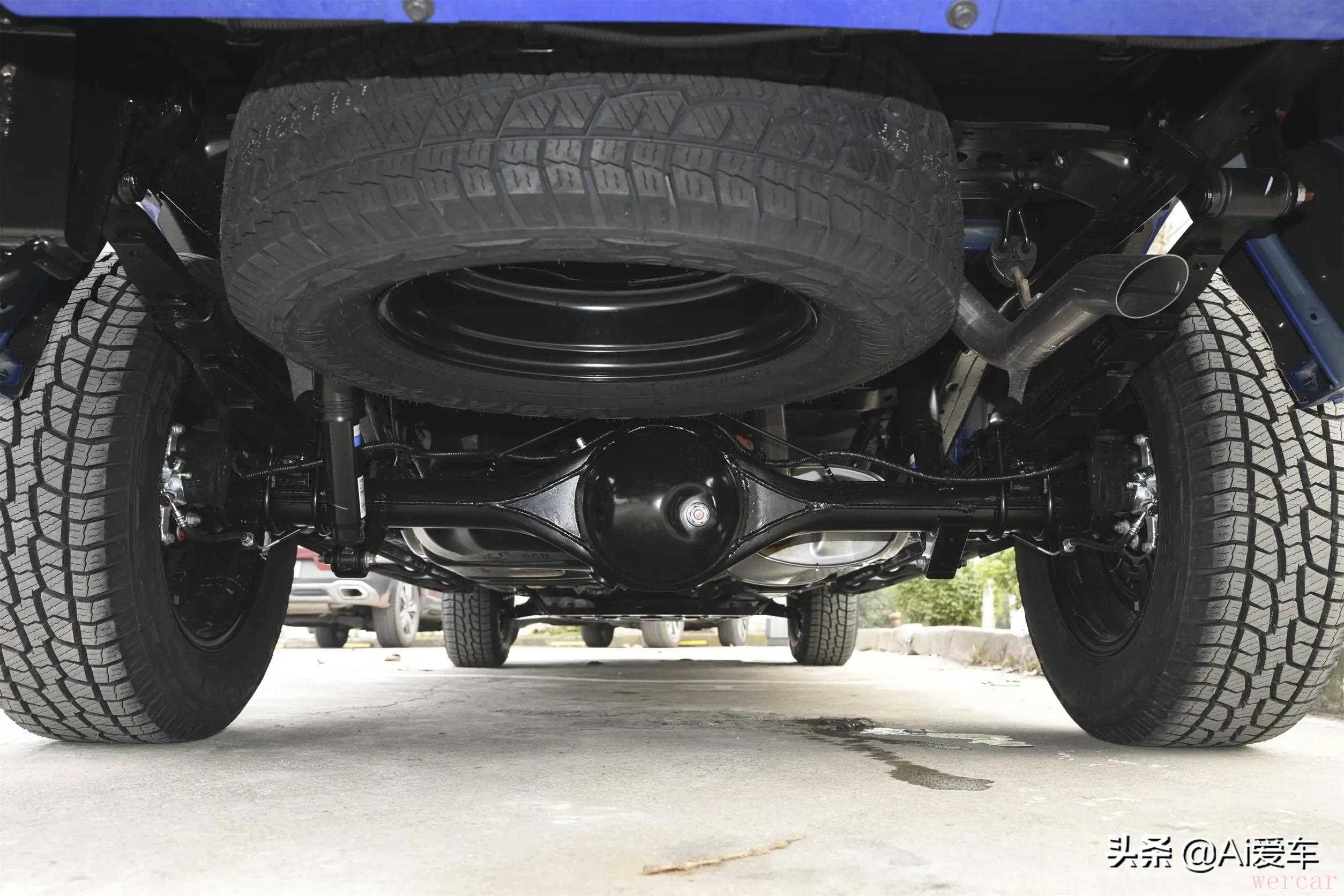 底盘前双横臂式独立悬挂,后整体桥式非独立悬挂,适时四驱,有运动、ECO、越野、标准舒适驾驶模式。