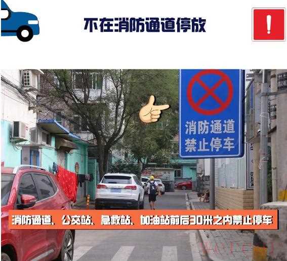 ◉公共汽车站、急救站、加油站、消防栓或者消防队(站)门前以及距离上述地点30米以内的路段,除使用上述设施的以外,不得停车;