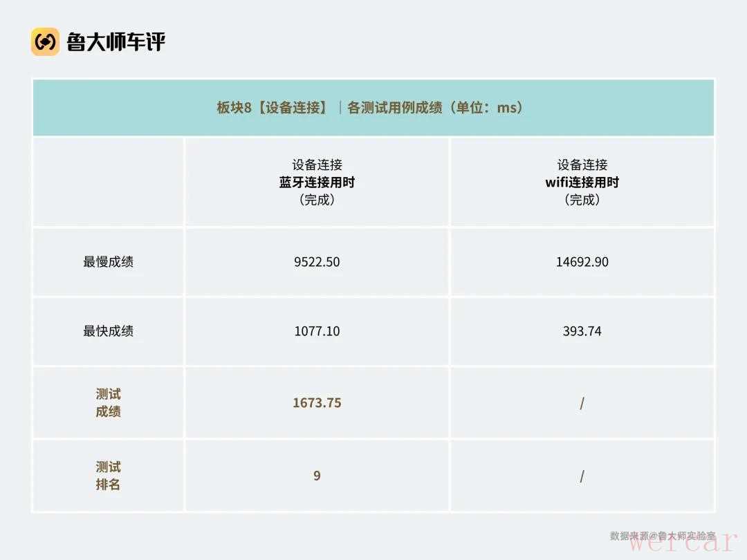 最后一个板块「设备连接」,蓝牙连接耗时1673.75ms(第9名),表现还算优秀,但不支持wifi连接。