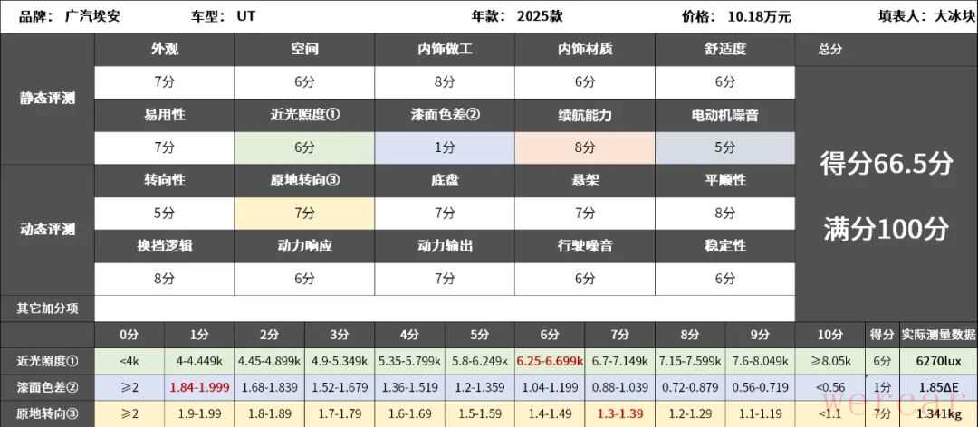 2025款广汽埃安UT试驾评分