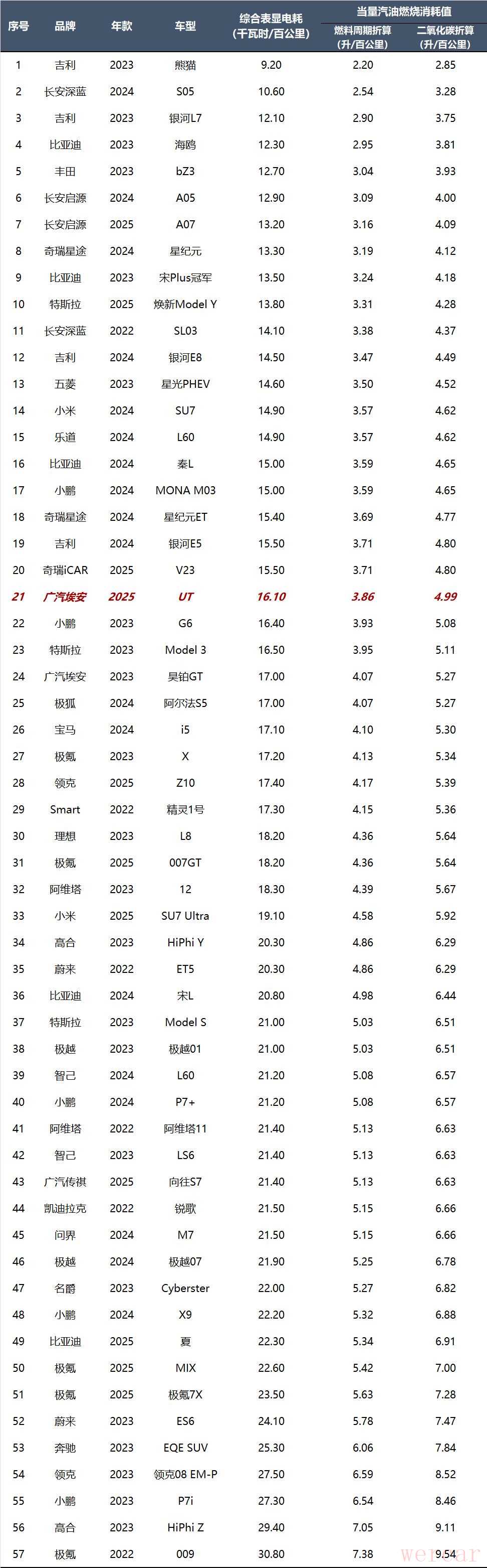 我们根据百公里耗电情况,进行电能当量燃油消耗折算,换算为“百公里油耗”。计算公式根据中华人民共和国标准《GB/T 37340-2019 电动汽车能耗折算方法》提供的“燃料生命周期法”和“二氧化碳排放法”分别进行计算。