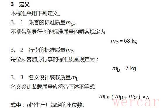 根据GB/T 5910-1998《汽车质量分布》规定,名义设计装载质量需要大于或等于乘客的标准质量加上行李的标准质量。其中,每位乘客的标准质量为 68千克,每位乘员随身行李的标准质量为7千克。加起来,一个人就是75千克。因此,一辆车名义设计装载质量需要不小于375千克。
